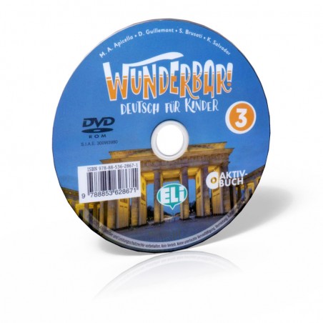 Wunderbar! 3 Aktivbuch - DVD-ROM to kompletny pierwszy poziom kursu Wunderbar! w wersji multimedialnej przeznaczony do pracy z wykorzystaniem komputera, projektora lub tablicy interaktywnej. Podręcznik cyfrowy dla nauczyciela na płycie stanowiący odpowiednik cyfrowej książki ucznia oferowanej w ramach pakietu cyfrowej obudowy dydaktycznej.