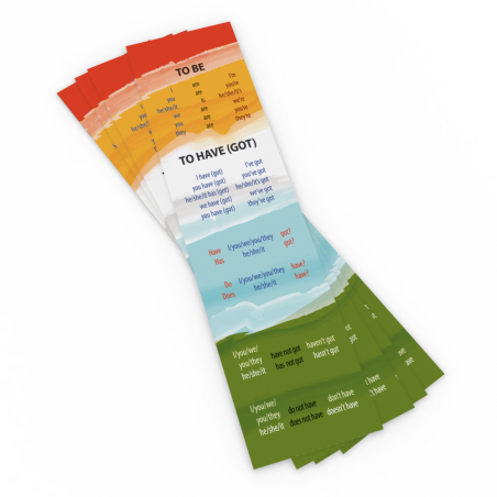 Zakładka edukacyjna z odmianami czasowników angielskich "to be" i "to have (got)".