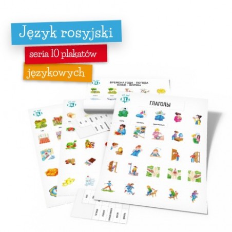 Zestaw 10 tematycznych plakatów edukacyjnych do nauki słówek rosyjskich do klasy